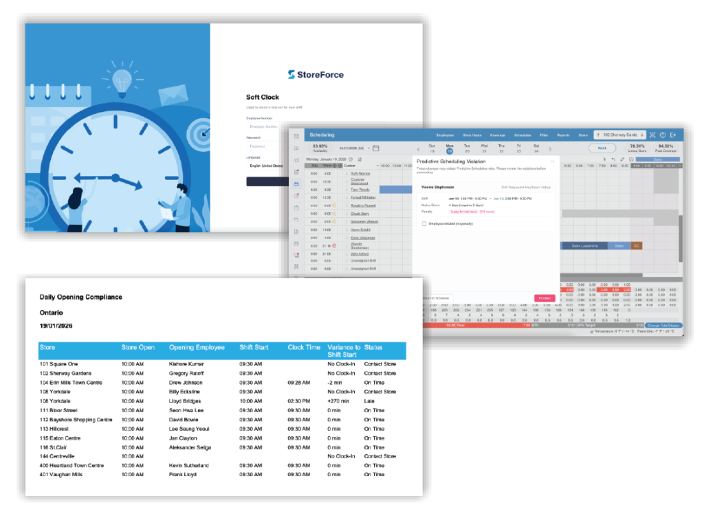 – The Daily Opening Compliance Report shows which stores opened on time each morning.